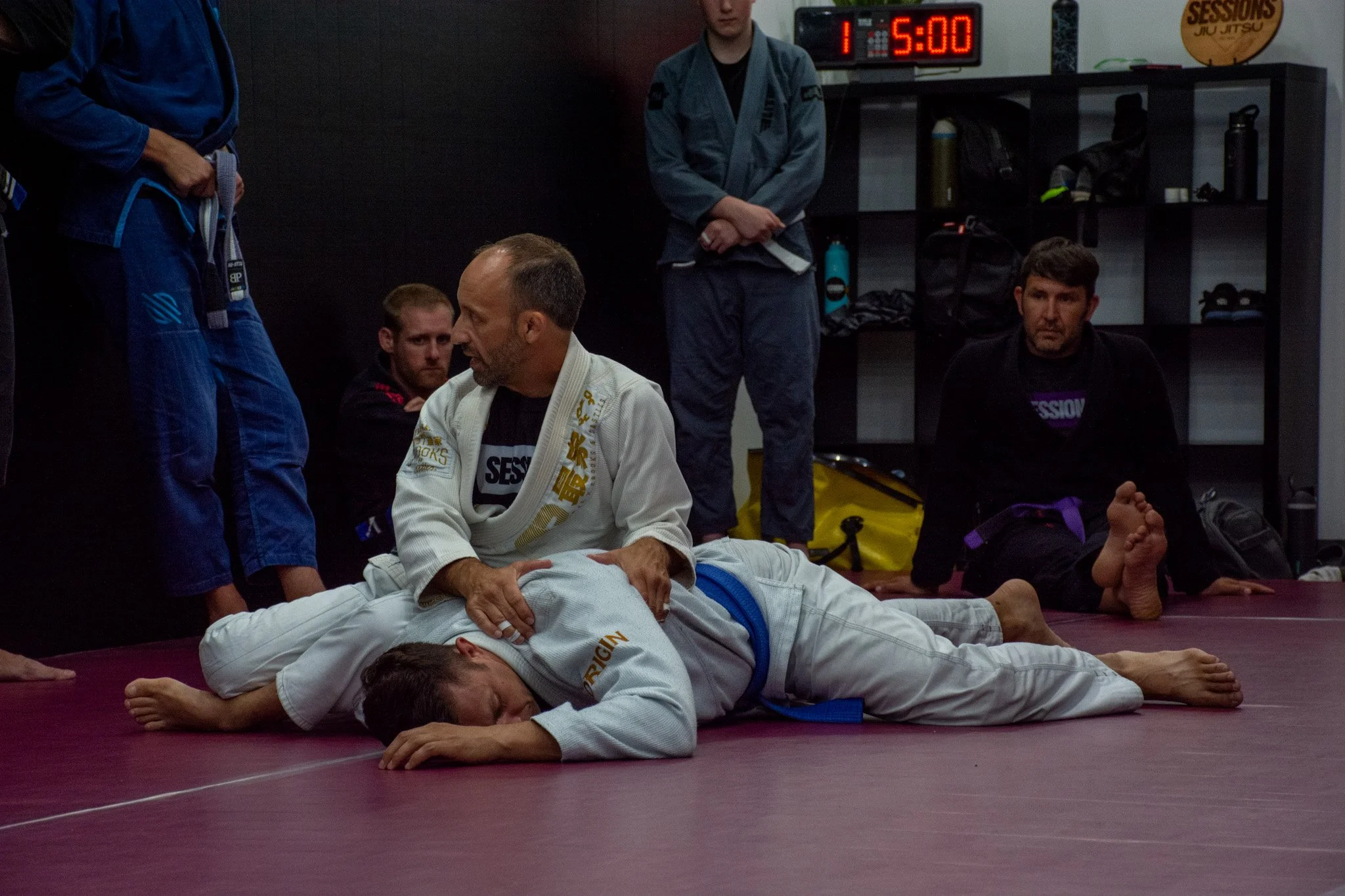 “Can’t say enough great things about Sessions! Kevin and the rest of the coaches are extremely knowledgeable and can tailor classes to beginners or more experienced grapplers. Great environment and even better people!” - Sam L.
